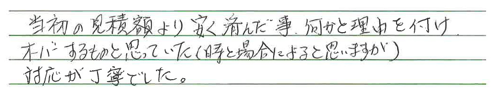 見積書をご確認していただき、ご納得していただいた上でご依頼をいただいております。