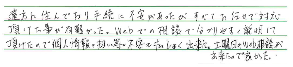 当事務所では、接客力・サービス力を強化する目的で、手続完了後にアンケートを実施しております。その一部をご覧ください。